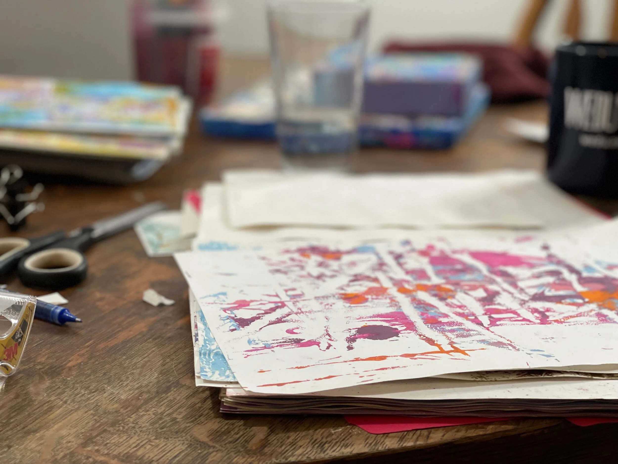 I layer, press, step away, and return, letting time work alongside me. Instead of forcing composition, I pay attention to what emerges.